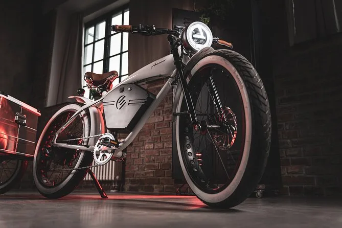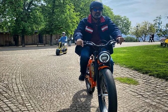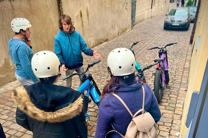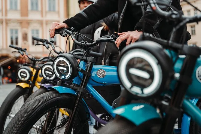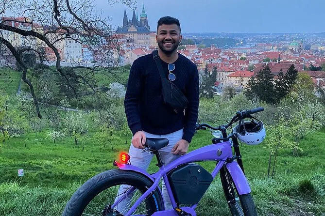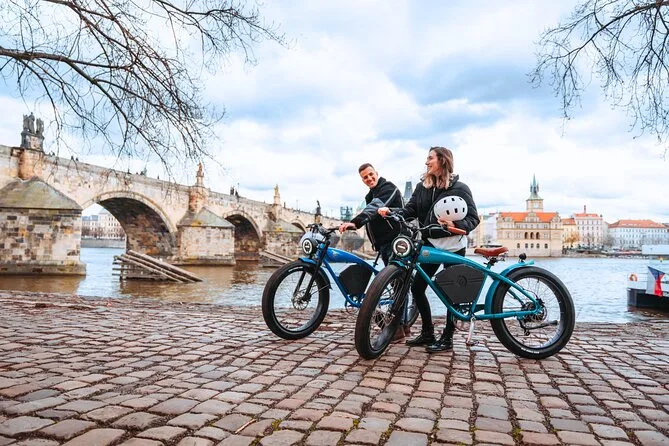 Tu día incluye el uso de una elegante e-bike estilo café racer con casco, agua embotellada cuando quieras, chubasquero por si aparece alguna nube, y un guía local experto que te acompaña en cada parada—desde el Puente de Carlos hasta el Monasterio de Strahov, para luego regresar al punto de inicio.