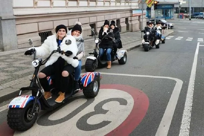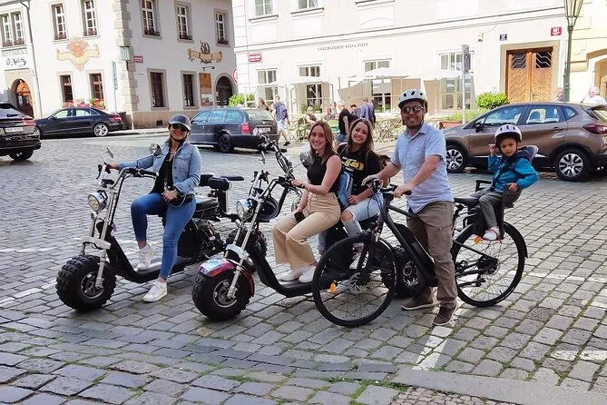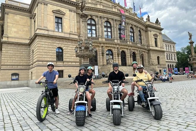 Tu día comienza con café o té ilimitado en la Plaza Maltezske, seguido de un entrenamiento de seguridad y una prueba supervisada en tu trike eléctrico —sin necesidad de licencia. Se proporcionan cascos de todos los tamaños, ponchos y guantes si hace falta. Un guía local en vivo te lleva por los mejores miradores de Praga con paradas para fotos antes de regresar al punto de partida.