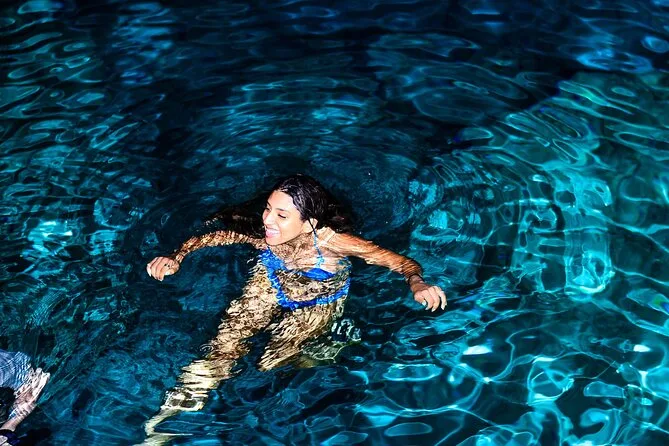 Después de enjuagar la mayor parte del barro (no todo), seguimos a Miguel hasta una cueva de agua escondida tras unas enredaderas—se sentía más fresco solo con entrar. El agua estaba sorprendentemente clara y fría; dudé un momento pero me lancé igual. Son solo unos veinte minutos, pero se quedan contigo mucho más tiempo. De vuelta al rancho, me di cuenta que mis zapatos jamás volverían a estar limpios—y de alguna forma, no me importó nada.