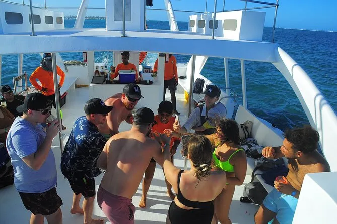 Sube a un catamarán de dos pisos en Punta Cana con tripulación local, disfruta bebidas de bienvenida mientras navegas por la costa de Bávaro, haz snorkel sobre arrecifes llenos de color (o simplemente toma el sol), y luego métete en la famosa Piscina Natural para snacks y música. Un día relajado pero animado, donde reirás con desconocidos y quizás bailes descalzo en la cubierta antes de regresar a tu hotel.