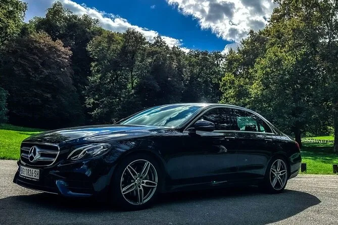 Te esperan en llegadas con tu nombre y te subes a un coche limpio con WiFi gratis mientras un conductor que habla inglés te lleva directo a tu hotel en el centro o Nuevo Belgrado. Agua fría lista, respuestas a tus dudas y cero estrés con direcciones o tarifas — solo un viaje cómodo hasta tu destino.