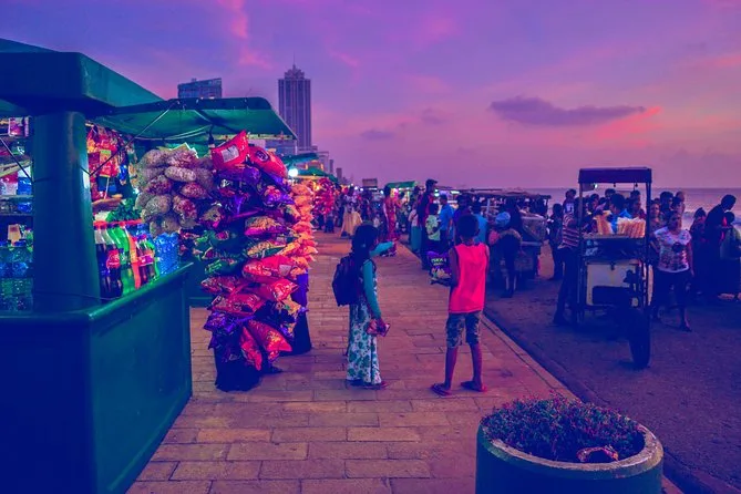 Tu noche incluye un tour privado a pie por el centro de Colombo con un guía local profesional que te llevará a diversos puestos de comida. Disfrutarás de una cena con platos tradicionales de Sri Lanka, con opciones veganas o vegetarianas si lo deseas. Durante la experiencia se sirve café o té, y todos los impuestos locales están incluidos.
