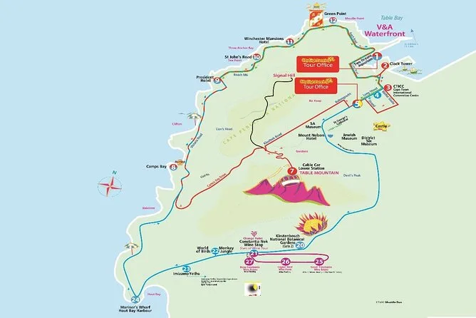 Tu día incluye salidas frecuentes en bus descubierto por tres rutas flexibles con WiFi gratis a bordo, audioguías en 15 idiomas (más versión para niños), acceso con descuento a Urban Safari, tours a pie por el centro y Bo Kaap, paradas directas en atracciones como el teleférico de Table Mountain y los Jardines Kirstenbosch, y canje fácil del voucher en cualquier parada oficial. También puedes añadir un paseo por el puerto V&A o un tour al atardecer si quieres más tiempo en el agua o la carretera.