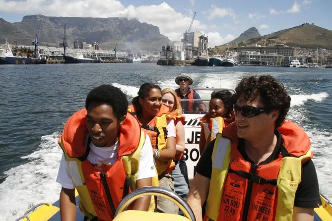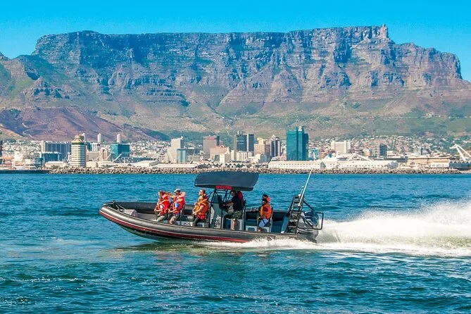 Tu experiencia incluye un paseo de 60 minutos en un bote inflable rígido que sale desde el Muelle 5 en el V&A Waterfront de Ciudad del Cabo, con un patrón local experto que te guiará en la búsqueda de vida marina a lo largo de la costa de Table Bay — chalecos salvavidas incluidos durante toda la aventura.