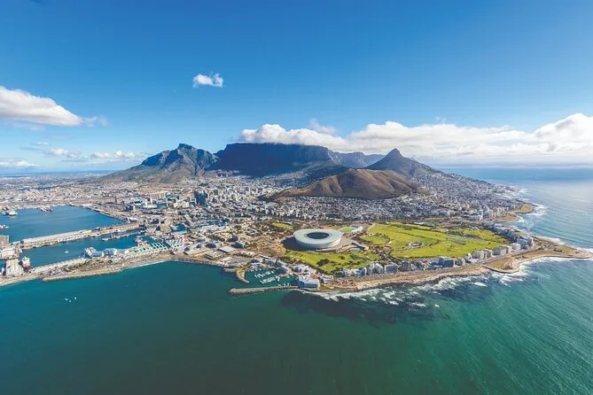 Sobrevuela el emblemático centro de Cape Town, su costa y montañas en un tour guiado en helicóptero con comentario en vivo y auriculares personales. Disfruta de vistas panorámicas de Clifton Beach y Table Mountain antes de aterrizar para una copa de espumoso en el V&A Waterfront. Incluye traslado de regreso para que solo te concentres en disfrutar.