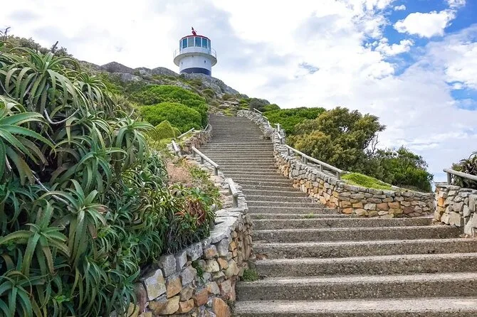 La Reserva Natural de Cape Point se siente salvaje y abierta. Vimos un grupo de babuinos descansando al borde del camino (mejor guarda tus snacks) y hasta un avestruz paseando entre el fynbos. La subida al faro es empinada pero vale la pena: allá arriba solo escuchas el viento y el oleaje lejano. Nuestro guía señaló dónde se juntan los océanos Índico y Atlántico, aunque en realidad es más una sensación que un punto exacto.
