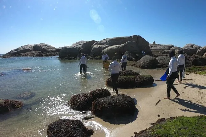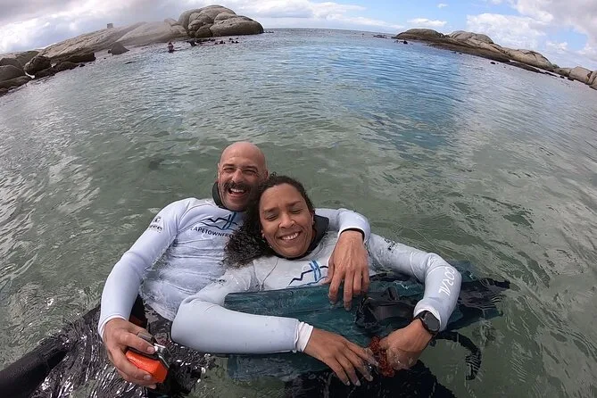 Tu experiencia incluye una explicación completa sobre la vida marina local y todo el equipo de snorkel—traje de neopreno, máscara, snorkel y aletas—para que estés cómodo y abrigado en el agua. Siempre hay una boya de seguridad disponible si quieres apoyo extra al nadar, y al finalizar te ayudarán a cambiarte antes de regresar a Muizenberg o seguir tu camino por tu cuenta.