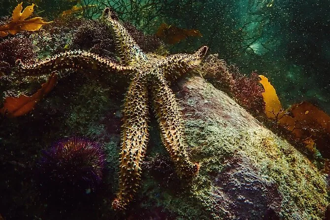 Podrás ver peces, pulpos, tiburones tímidos, estrellas de mar, anémonas, abulones y, según las condiciones, focas o pingüinos.