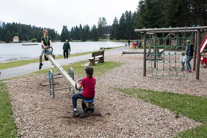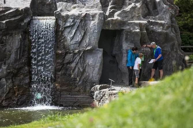 El recorrido rodea el Heidsee y te mantiene alerta en cada paso. En una parada jugamos con una pequeña cascada —¡sí, se puede controlar!— y en otra tuvimos que estirar el cuello para ver unas banderas curiosas ondeando con el viento. Después de la lluvia se siente ese aroma a pino que se queda contigo. Nuestro guía nos contó que incluso los habituales se confunden con las trampas del zorro. No te preocupes si te atascas; la línea de ayuda es un salvavidas y súper amable.