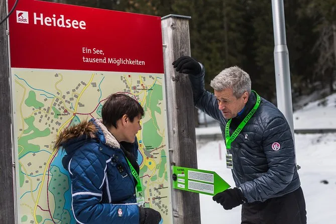 Desde el primer momento sentirás el aire fresco de la montaña mientras nos reunimos cerca del Heidsee. El lago siempre está ahí: a veces brilla con un azul intenso, otras veces se cubre de hielo si vienes en invierno. Nuestro grupo encontró la primera pista dentro de una caja de madera desgastada junto a la orilla. Nos llevó un rato descifrar el acertijo (confieso que tuvimos que pedir ayuda por la línea de asistencia), pero esa es parte de la diversión. Verás a locales corriendo o niños dando de comer a los patos, sin darse cuenta de nuestro pequeño grupo concentrado en las pistas.