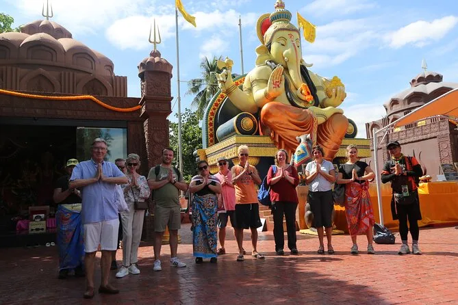 Se para en templos budistas locales y es posible ver estatuas hindúes en el camino.