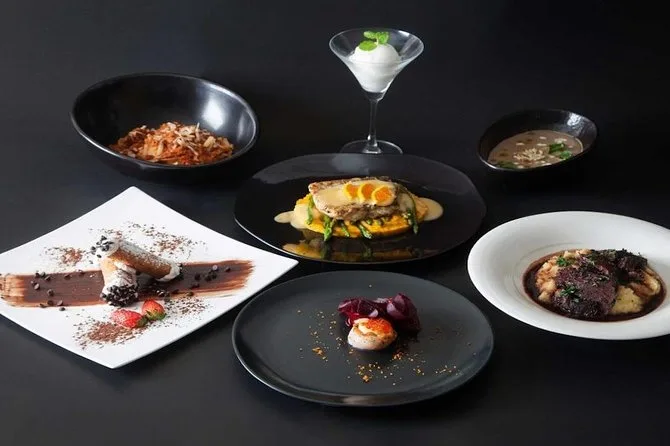 Tu cena italiana de cinco tiempos incluye entradas como lubina marinada o tostada de roast beef con trufa, pasta rellena hecha a mano o solomillo a la parrilla como plato principal, postre (pastel de almendra y chocolate con helado de maracuyá), además de té o café. El lugar es accesible para sillas de ruedas. Hay opciones de transporte público cerca. Ten en cuenta que el menú puede cambiar sin previo aviso; las solicitudes dietéticas se atienden con aviso anticipado.