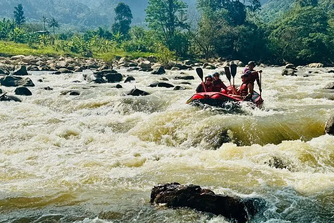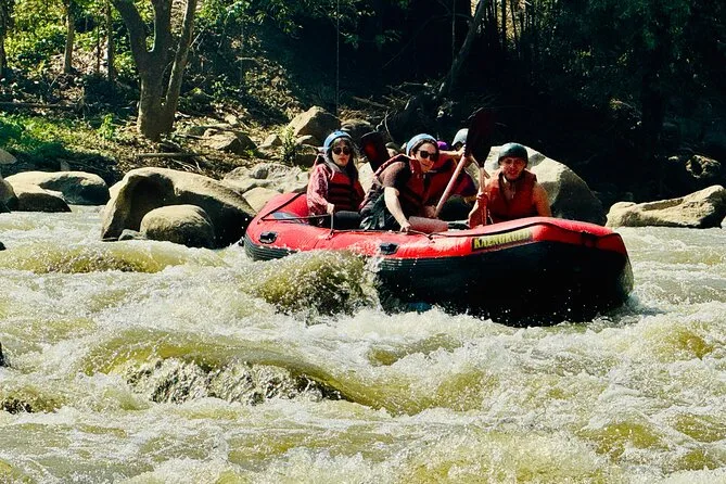 El rafting cubre rápidos de nivel 3-4 en unos 4 km y dura entre 40 y 50 minutos; se recomienda tener buena condición física.