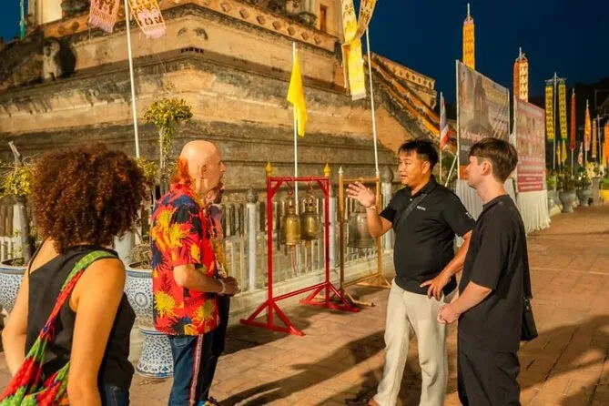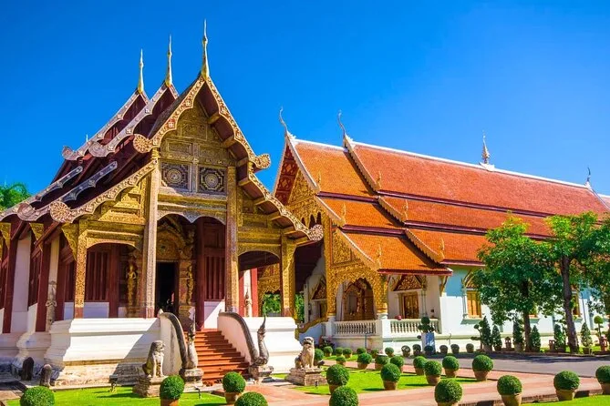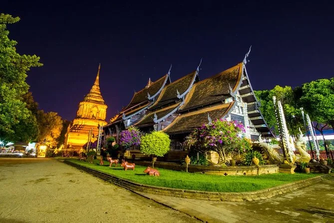 Pasarás por la Puerta Tha Phae, Wat Chedi Luang, el Monumento a los Tres Reyes, Wat Intakhin y callejones y patios tranquilos de templos.