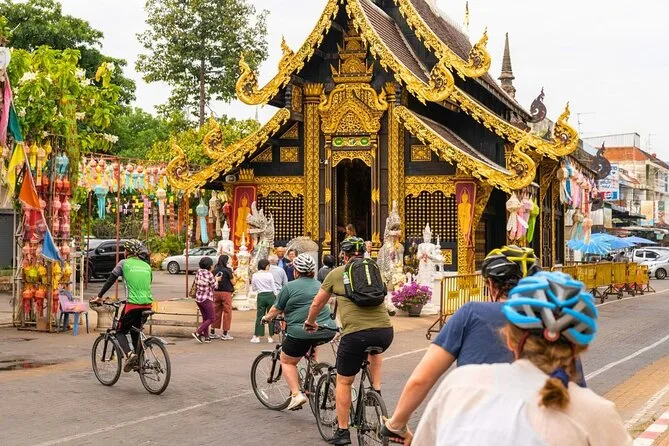 Pedalea por las antiguas puertas, templos y mercados de Chiang Mai en grupo reducido