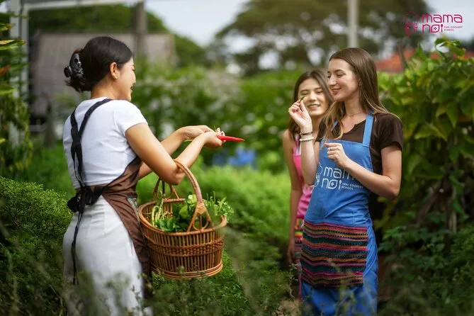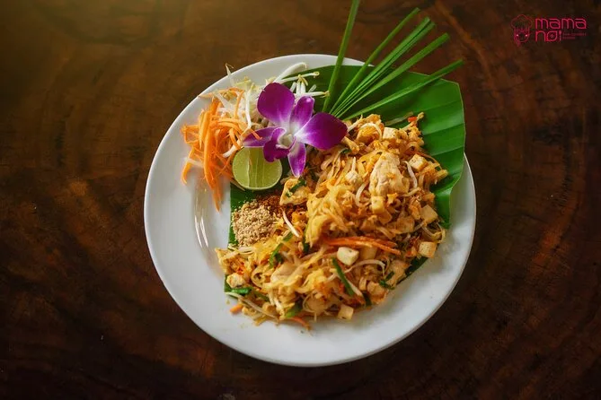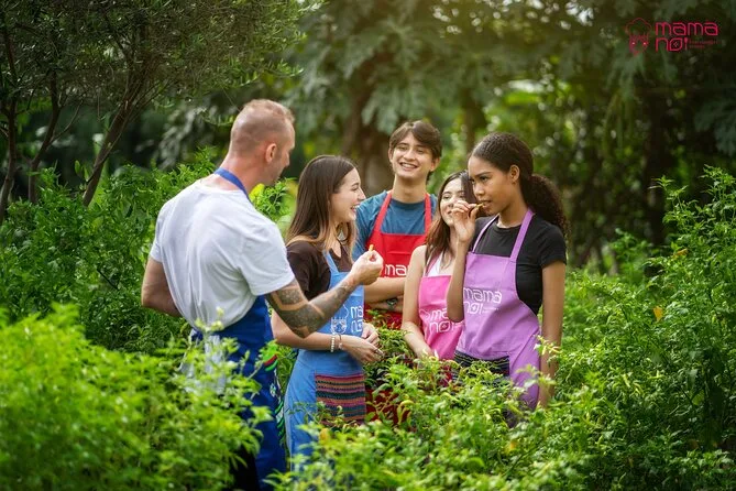 Tu experiencia incluye recogida y regreso al hotel en Chiang Mai, un tour guiado por la granja orgánica para recoger ingredientes frescos, tu propia estación para cocinar cinco platos tailandeses con ayuda de una chef local, arroz pegajoso con mango y té tailandés de cortesía, además de un cuadernillo con las recetas para llevarte esos sabores a casa.
