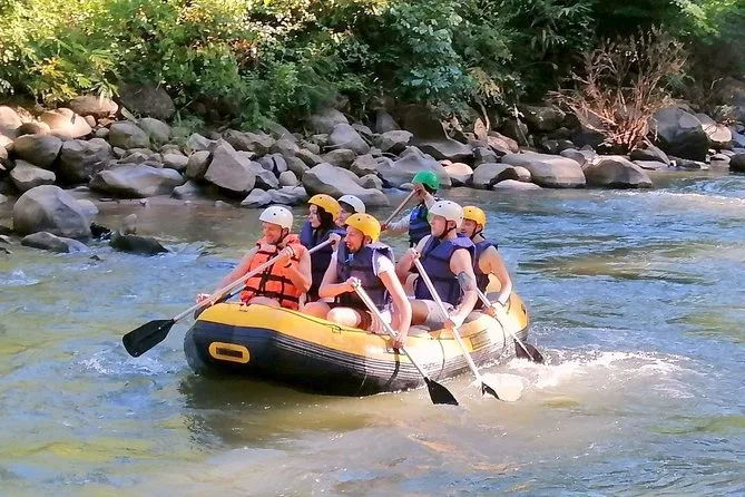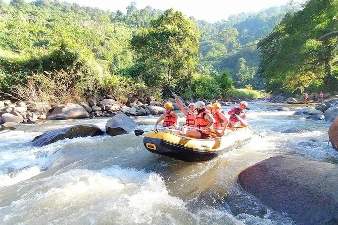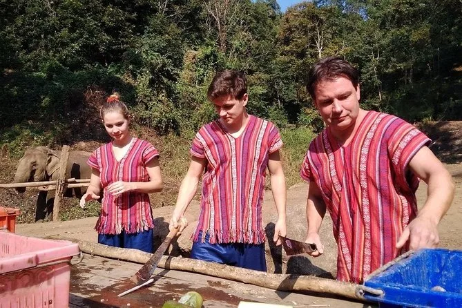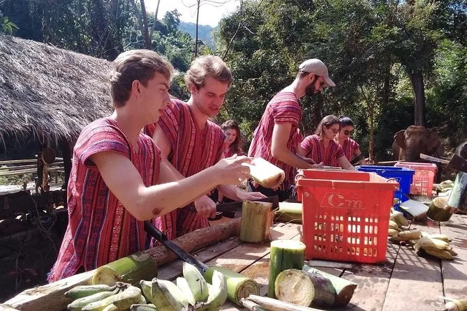 Preparar comida para los elefantes, ver su spa de barro y baño en el río, almorzar, hacer rafting (unos 50 minutos) y caminar dos horas por la selva hasta una cascada.