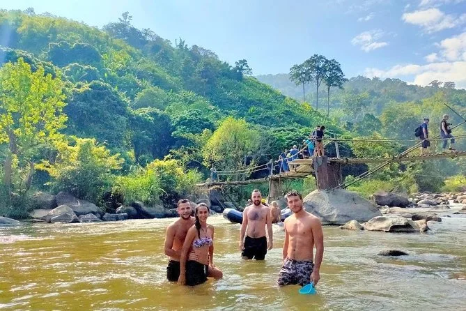 Camina por senderos cerca de Chiang Mai con guías locales, alimenta elefantes rescatados a mano, mira cómo se divierten en el barro y el río, comparte un almuerzo tailandés bajo techos de bambú, luego haz rafting por la selva y camina hasta una cascada escondida. Risas, pies embarrados, historias sinceras y momentos que recordarás mucho después de volver a casa.