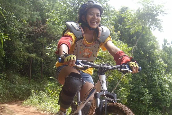 Comienza tu día en Chiang Mai con una caminata por senderos selváticos y cascadas, visita una aldea Hmong para almorzar con sabores locales, luego baja en bici por los bosques de Doi Suthep–Pui y termina relajándote o nadando junto al lago, agotado pero feliz.