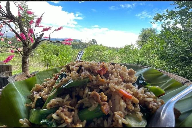 La caminata hasta Doi Pui nos tomó unas tres horas, ¿quizás? El tiempo se vuelve raro cuando solo miras tus pies y escuchas pájaros que no sabes nombrar. En un momento, Nok señaló un árbol que parecía sacado de una película de Miyazaki—lo llamó Mai Yai. Llegamos a la aldea de la tribu Hmong justo al mediodía. El almuerzo fue sencillo pero delicioso: arroz, verduras salteadas y algo de pollo, y juro que nunca nada me supo tan bien después de esa subida. Había niños corriendo con resorteras y una anciana tejiendo cestas en la puerta; nos sonrió pero no dijo mucho. Intenté dar las gracias en tailandés (mal, claro), y todos se rieron.