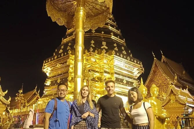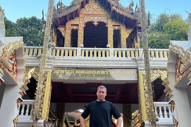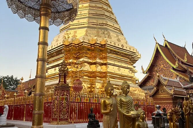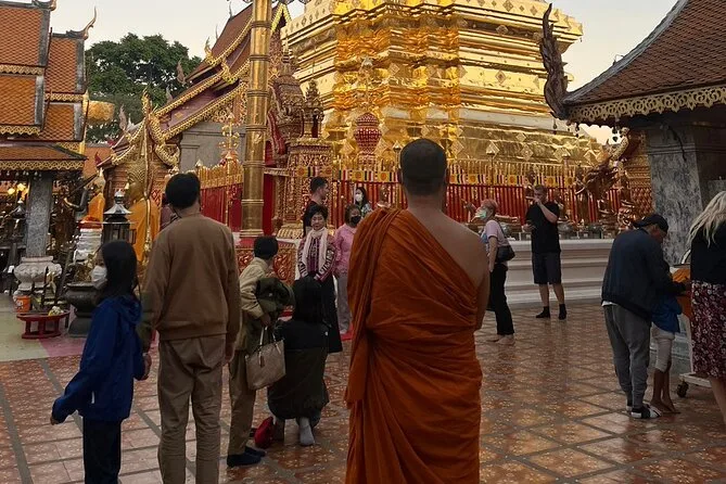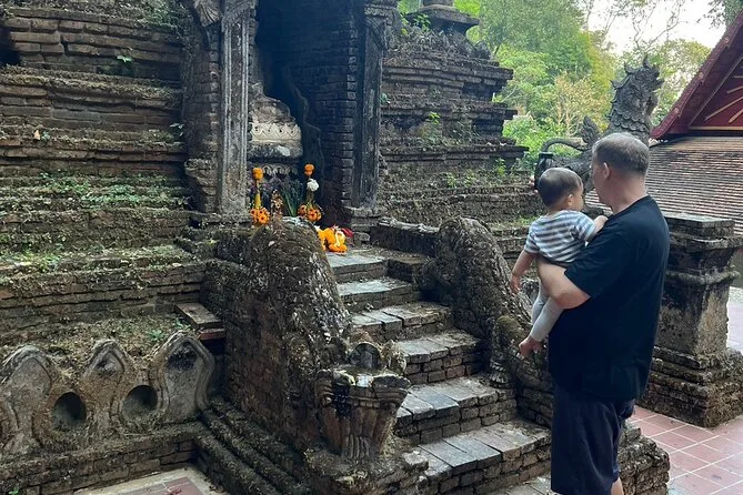 Camina por el Sendero Monk en Chiang Mai hasta Wat Pha Lat, viaja en un songthaew abierto con tu guía local y sube las escaleras del dragón en Doi Suthep para disfrutar de vistas únicas. Risas, momentos de calma entre estatuas antiguas y tiempo para empaparte de la vida del templo — todo con recogida incluida.