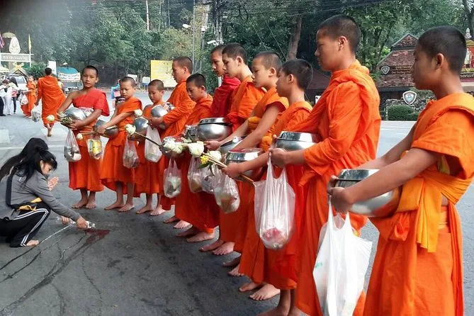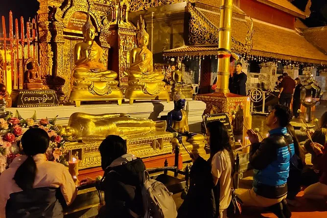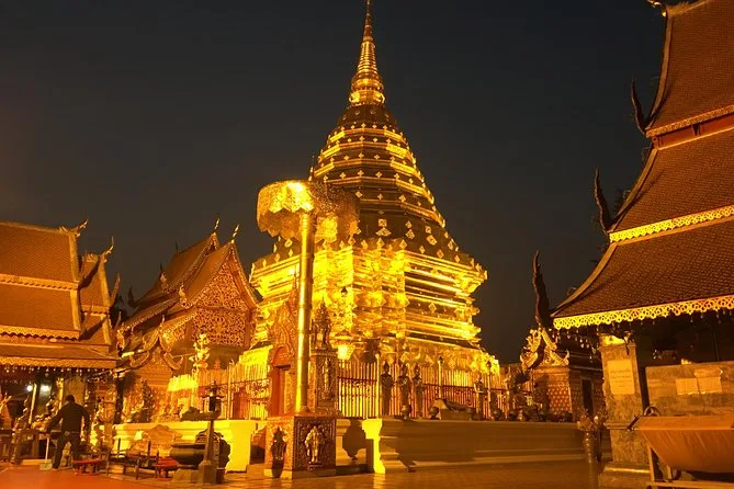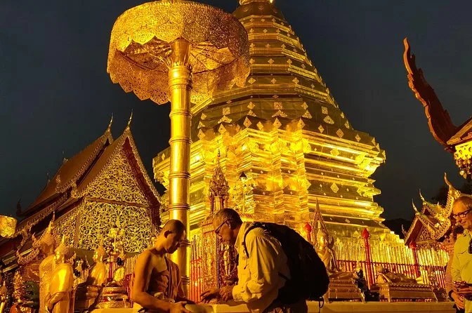 Te levantarás antes del amanecer en Chiang Mai para un tour en Doi Suthep con un exmonje —ofreciendo limosnas mientras los cantos llenan el aire. Disfruta vistas panorámicas, prueba el desayuno local como el khao soi y explora templos tranquilos en la selva antes que la mayoría de turistas despierten.