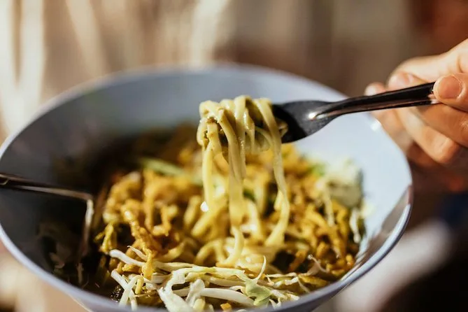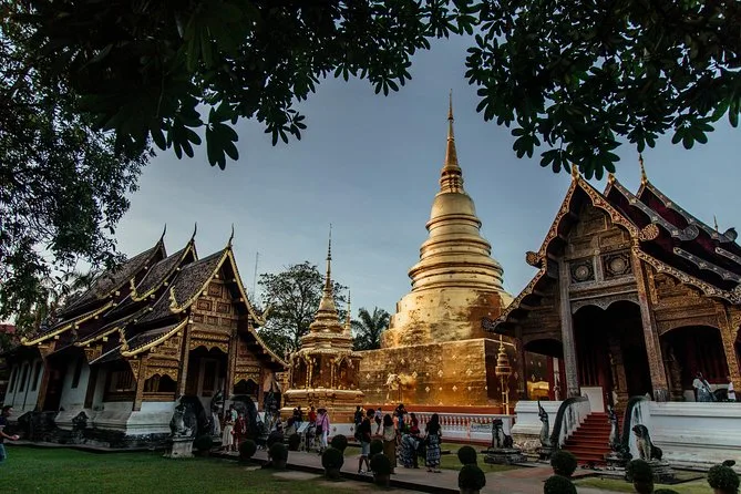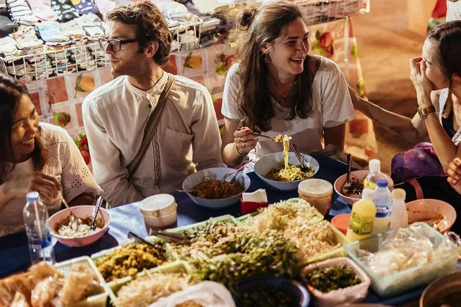 Acompaña a un guía local en un paseo nocturno por los templos iluminados y el animado mercado Warorot, probando comida callejera recién hecha. Cruza el río Mae Ping al atardecer y termina la noche con una cerveza en un bar junto al río — momentos que recordarás mucho después de dejar Tailandia.