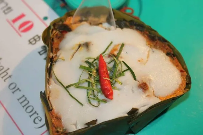 Probarás al menos ocho platos diferentes, incluyendo delicias del norte de Tailandia como pata de cerdo estofada, bolitas de coco, fideos y comidas tanto saladas como dulces.