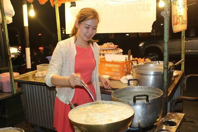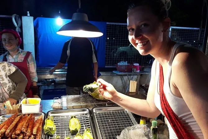 Recorrerás los animados mercados nocturnos de Chiang Mai en grupo pequeño, probando comida callejera del norte como bolitas de coco y pata de cerdo estofada. Con un guía local que te ayuda a pedir en tailandés, compartirás risas y sabores nuevos antes de volver al hotel lleno y contento, y quizás más valiente para tu próxima comida.