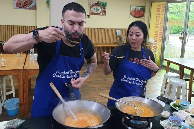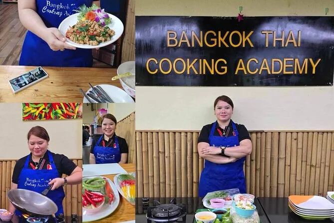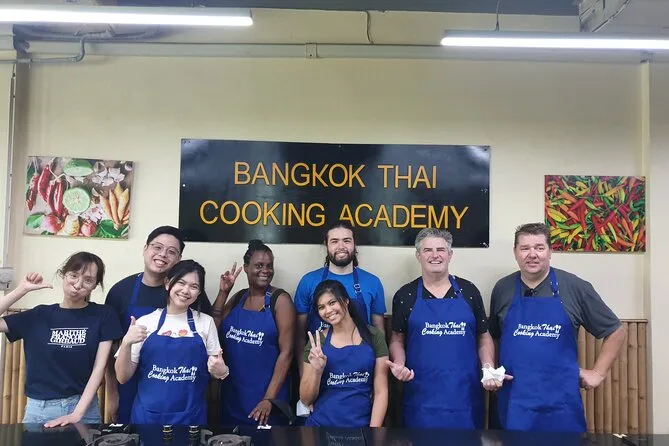 Tu medio día incluye recogida en la estación BTS On Nut, un tour guiado y dinámico por el mercado para comprar ingredientes frescos, clases prácticas con un chef que habla inglés en una cocina con aire acondicionado, todos los platos que elijas, además de almuerzo o cena según la sesión, agua fría durante toda la experiencia y acceso online a recetas y videos para que puedas repetirlas en casa.