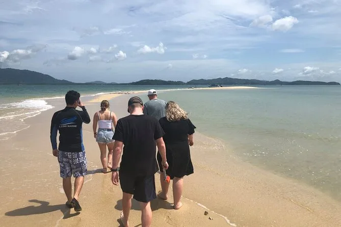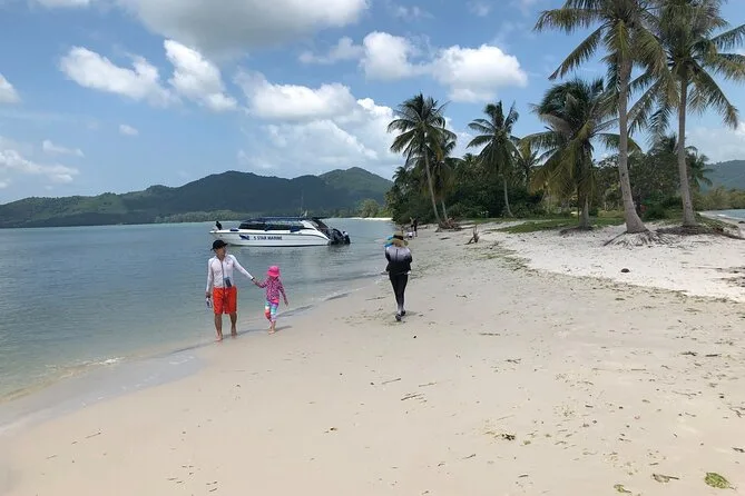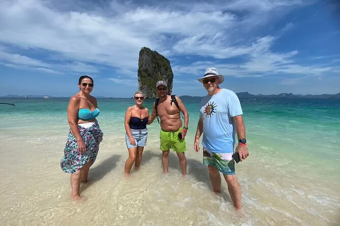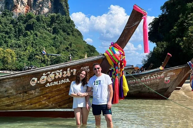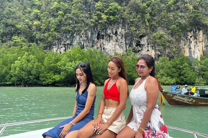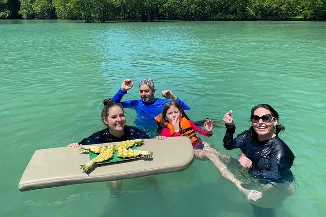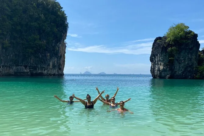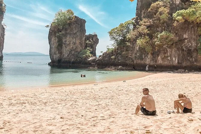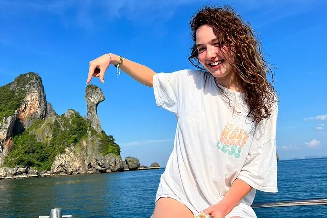Tu día privado en las Islas de Krabi incluye transporte en barco con guía local, agua embotellada y refrescos durante todo el recorrido, snacks y fruta fresca tras las paradas para nadar, acceso a baños a bordo para mayor comodidad entre islas, y almuerzo en Playa Railay antes de regresar a tiempo para disfrutar del atardecer sobre la bahía.