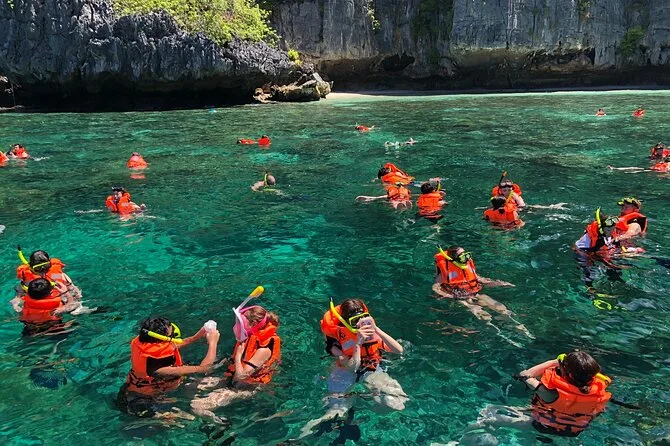 Visitarás Bamboo Island, Monkey Beach, Ko Phi Phi Le (para snorkel), Cueva Vikinga (solo vista) y Maya Bay (desde el barco).