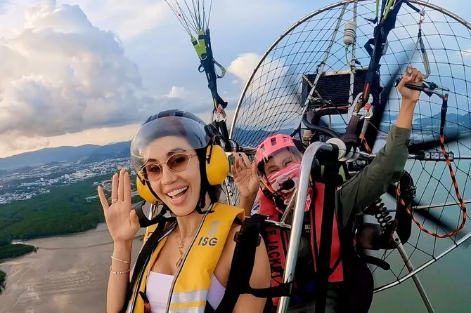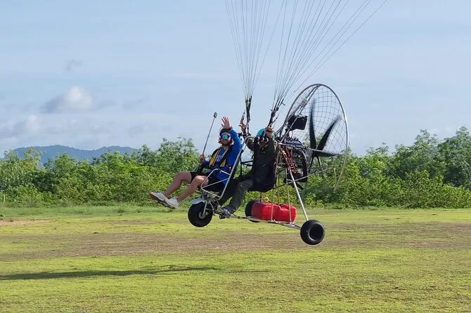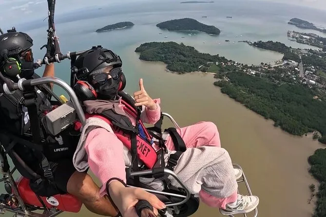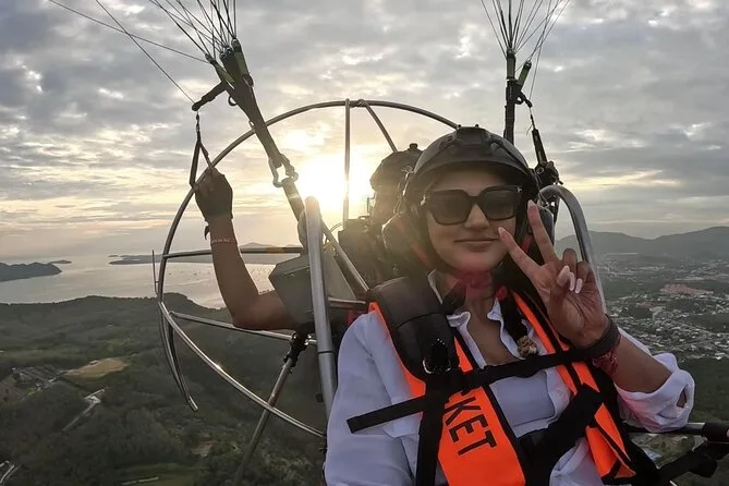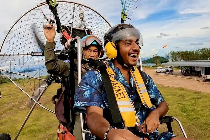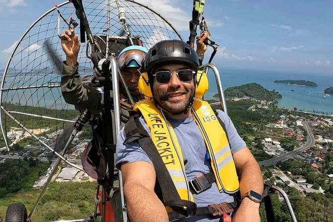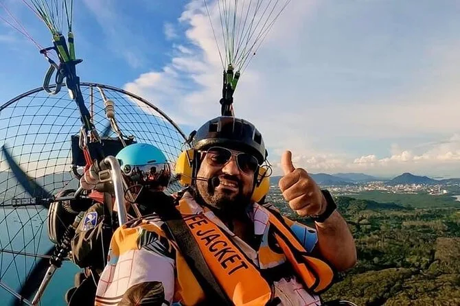 Tu día incluye un vuelo en paramotor tándem con un instructor certificado cerca de Phuket Town; todos los impuestos y tasas oficiales están cubiertos; agua embotellada te espera al aterrizar; además recibirás un video premium en GoPro para revivir esos minutos increíbles en el aire cuando quieras.