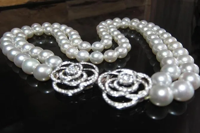 Después nos dirigimos a una fábrica de perlas. Nunca había visto cómo se clasifican las perlas a mano; es sorprendentemente relajante de observar. La joyería al lado tenía todo tipo de cosas brillantes (yo me limité a mirar). Si te gustan las gemas o las joyas, este lugar merece una visita.