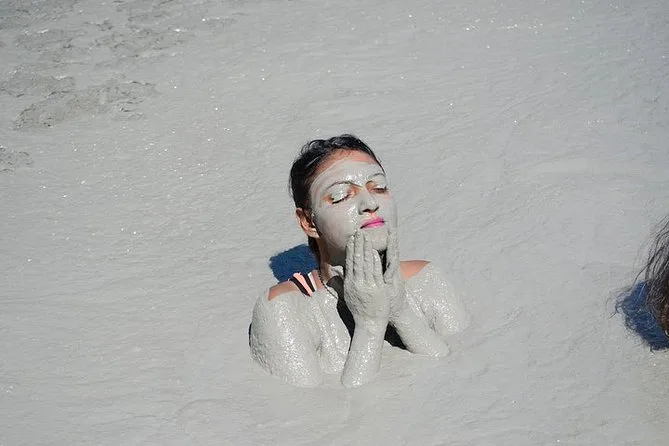 La caminata me sorprendió. Son unos 45 minutos atravesando lo que antes fue una plantación de azúcar, luego entrando en un bosque de teca donde el suelo huele a humedad y tierra. Se escuchaban pájaros cantando arriba, pero en su mayoría éramos nosotros pisando hojas secas, a veces en silencio salvo por algún chiste o una pregunta sobre los árboles. Cuando finalmente llegamos al volcán de lodo — una gran piscina grisácea rodeada de tierra agrietada — parecía casi lunar. El primer paso es extrañamente frío y sedoso; flotas porque no te hundes. Alguien intentó hacer una parada de manos (no funcionó). Mi piel quedó con un cosquilleo, aunque quizás era solo la emoción.
