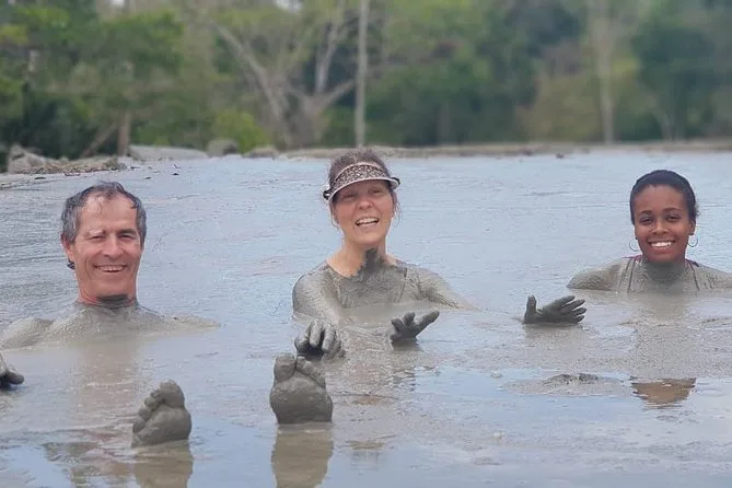 Tu día incluye recogida y regreso al hotel desde hoteles seleccionados en Trinidad, caminata guiada por plantaciones y bosques de teca, degustación de comida indo-caribeña (como doubles), agua embotellada y snacks en el camino, además de tiempo para relajarte en la piscina natural del volcán de lodo y en una playa tranquila de la costa suroeste antes de regresar.