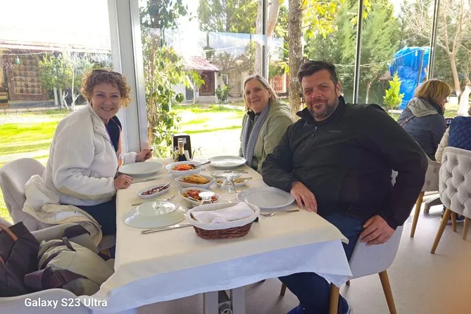 El almuerzo fue en un pueblo cercano — nada lujoso, solo mesas bajo parras y platos de guiso de berenjena y pollo a la parrilla. Alguien intentó tejer una alfombra (yo no; seguro me enredaría), y el olor a lana y especias flotaba en el aire. Después paramos en lo que queda del Templo de Artemisa — solo queda una columna, con cigüeñas anidando en la cima como si fueran las dueñas. Es raro ver algo tan famoso reducido a casi nada, pero quizás por eso me impactó más de lo que esperaba.
