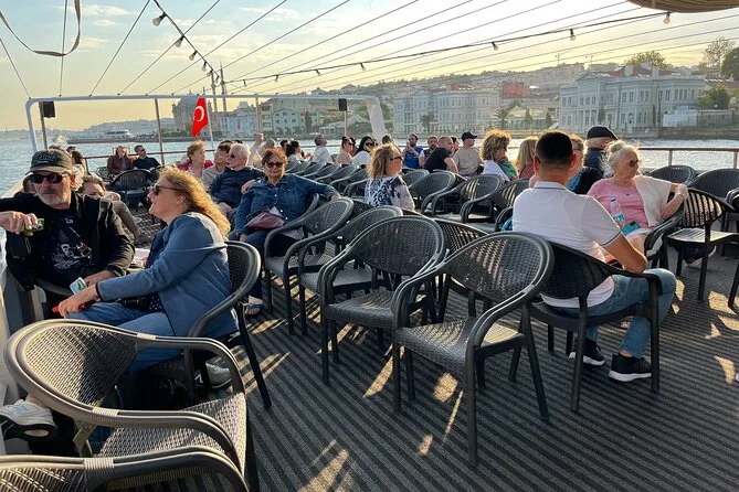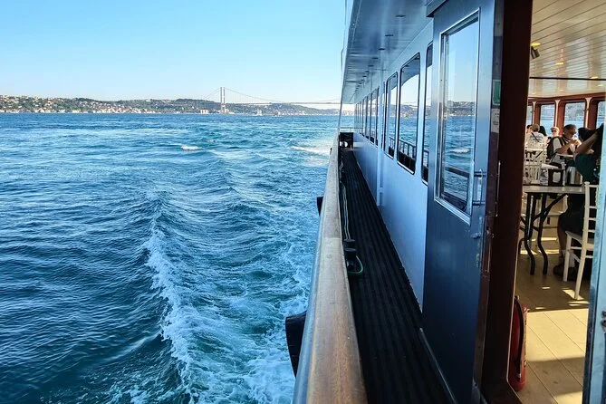 Tu tarde incluye agua embotellada durante todo el recorrido, todas las tasas y cargos cubiertos para que no tengas que preocuparte por gastos extras a bordo, además de WiFi mientras navegas entre Europa y Asia. El transporte es en un barco moderno con aire acondicionado, con espacio para relajarte dentro o fuera, y tu guía local compartirá historias de cada lugar antes de regresar de noche.