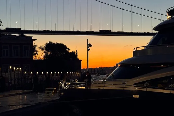Navega por el Bósforo al atardecer con un guía local, pasando palacios y mezquitas iluminados. Haz una pausa de una hora en el tranquilo Beylerbeyi en la orilla asiática—pasea o visita el palacio—antes de regresar junto a monumentos iluminados. Vive la historia y la vida diaria mezclándose mientras la ciudad se enciende a tu alrededor.