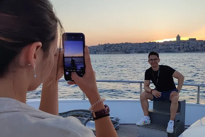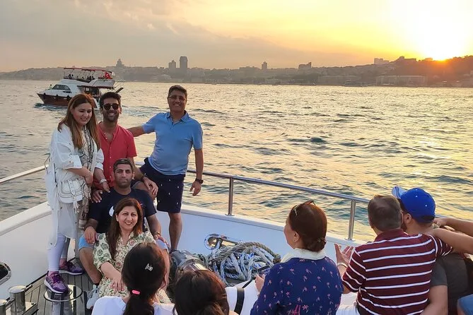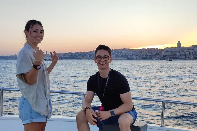 Tu velada comienza con el embarque grupal en la marina, guiados por un experto local que narra mientras navegas entre los puntos más destacados de Estambul en Europa y Asia. Se sirven frutas frescas de temporada, deliciosas galletas y baklava junto con limonada casera con menta, además de té y café durante todo el trayecto. El yate dispone de baños para tu comodidad antes de regresar a tierra tras el atardecer.