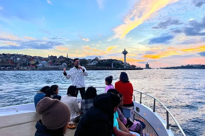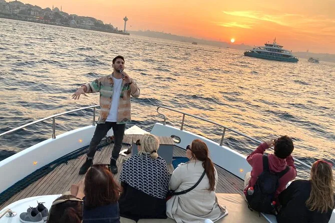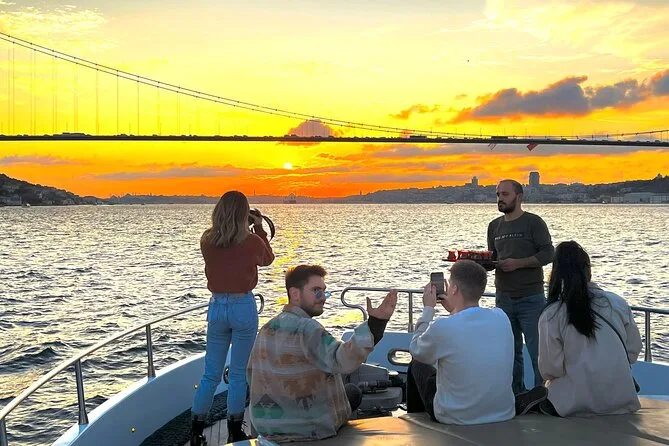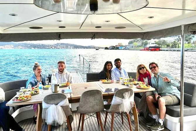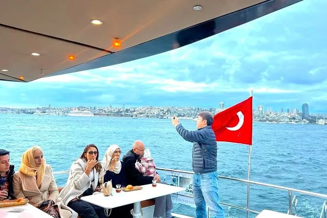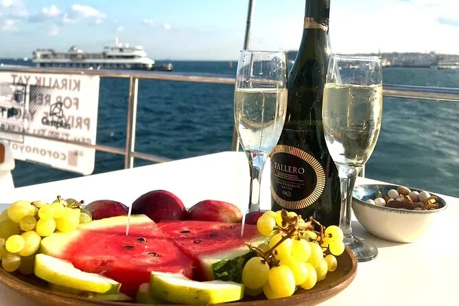 Tu experiencia incluye recogida en Estambul antes de subir a un yate de lujo diseñado para tu confort. A bordo disfrutarás de baklava turco, galletas, fruta fresca diaria y bebidas como té o limonada casera (o jugo en invierno), junto con deliciosos canapés y snacks, mientras escuchas el comentario en vivo del guía al pasar por los principales puntos de ambas orillas del estrecho del Bósforo.