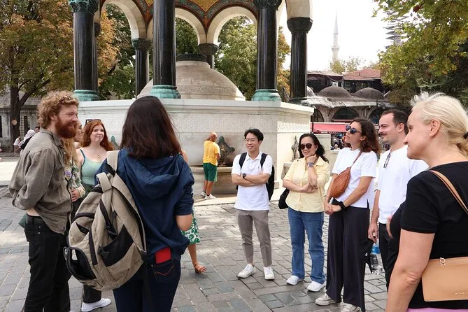 Tu día incluye entradas (si las seleccionas), un guía local experto que se encarga de las entradas para que evites filas, y muchas historias mientras recorres los sitios históricos de Sultanahmet. Solo tienes que encontrarte con el grupo en un punto fácil cerca de la Fuente Alemana antes de comenzar.