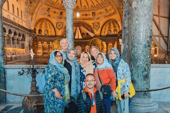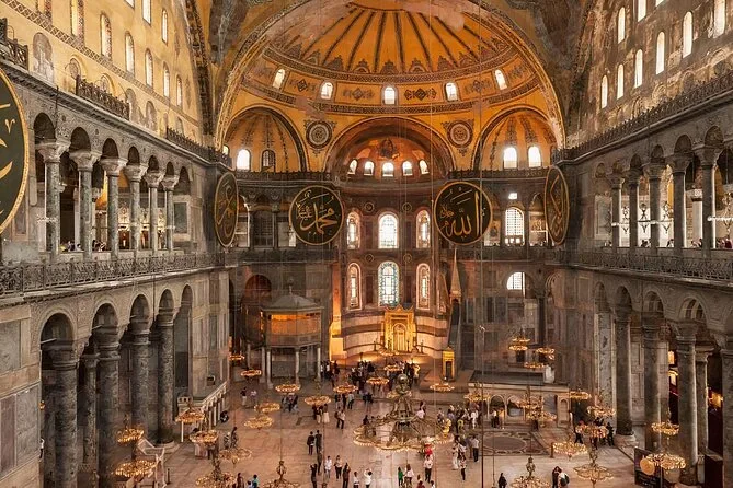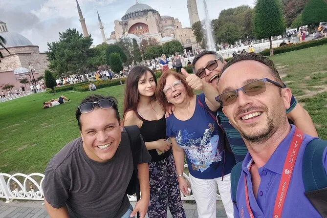 Tu día incluye caminatas guiadas por Hagia Sophia, Mezquita Azul, Hipódromo, Cisterna Basílica, Gran Bazar y Palacio Topkapi con todo organizado por un experto local que habla inglés. También un crucero público de 90 minutos por el Bósforo — solo lleva calzado cómodo y ganas de descubrir las capas de historia de Estambul.