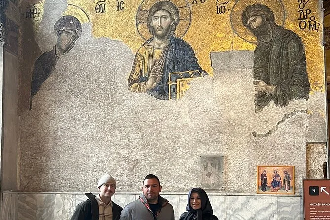 La siguiente parada fue la Mezquita Azul—quitarse los zapatos, cubrirme la cabeza con un pañuelo (casi lo olvido, pero Cem tenía uno extra). Dentro, esos azulejos azules de İznik realmente brillan cuando entra la luz del sol. Había un silencio suave a pesar de la gente por todos lados. Me sorprendí susurrando sin darme cuenta. Luego cruzamos hacia Santa Sofía, que es simplemente… enorme. Los mosaicos están algo desgastados, pero si miras hacia arriba el oro aún brilla (todavía me duele un poco el cuello). Cem nos contó historias de sultanes y emperadores que cambiaron de lugar aquí—lo hacía parecer como si hubiera pasado la semana pasada.
