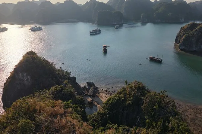 Navega entre las islas de piedra caliza de la Bahía de Ha Long con guía local, haz kayak en la Cueva Hang Luon, explora las formaciones surrealistas de la Cueva Sung Sot, nada o sube en la Isla Ti Top, y comparte un almuerzo a bordo antes de volver a Hanoi. Risas, aire salado y momentos para ti te esperan.