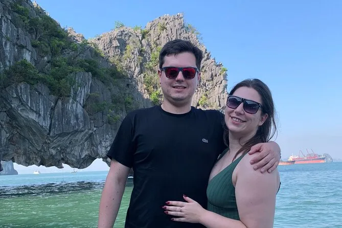 No esperaba que el silencio me impactara tanto al salir del puerto de Tuan Chau — solo el suave zumbido del barco y ese aire salado y fresco. Nuestro guía Minh nos entregó toallas frías (una maravilla después del tráfico de Hanoi) y señaló esas islas con formas curiosas — mi favorita fue la llamada “Pollo Peleador”, sobre todo porque Minh se rió cuando intenté decirlo en vietnamita. El agua parecía tan quieta que daba la sensación de que alguien había pausado todo, excepto nuestro barco.