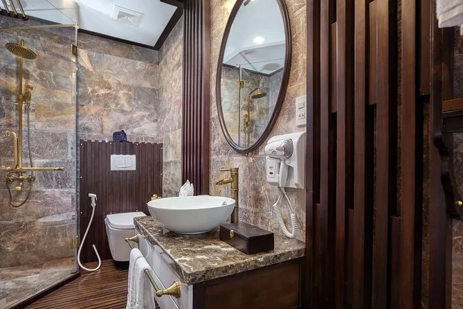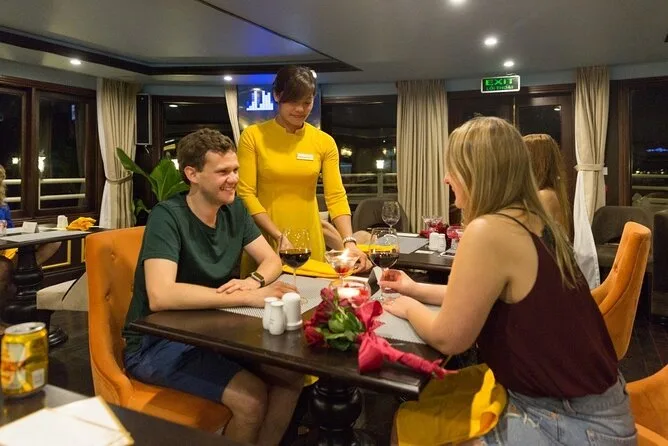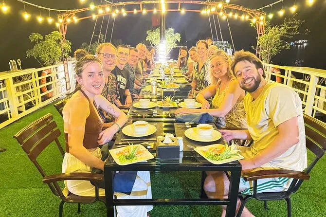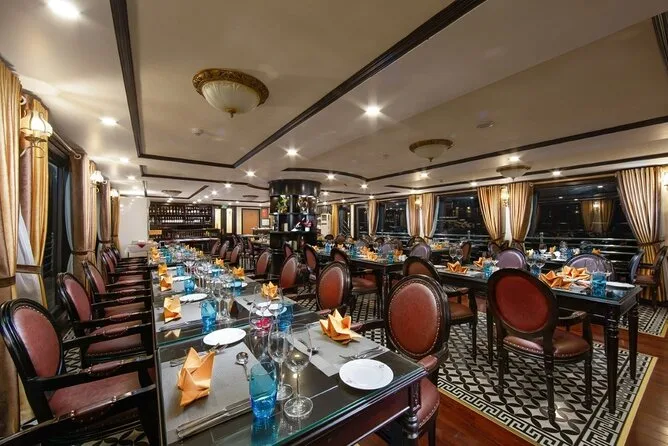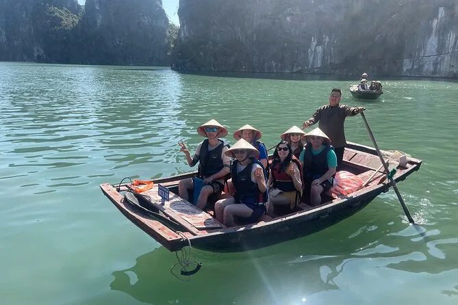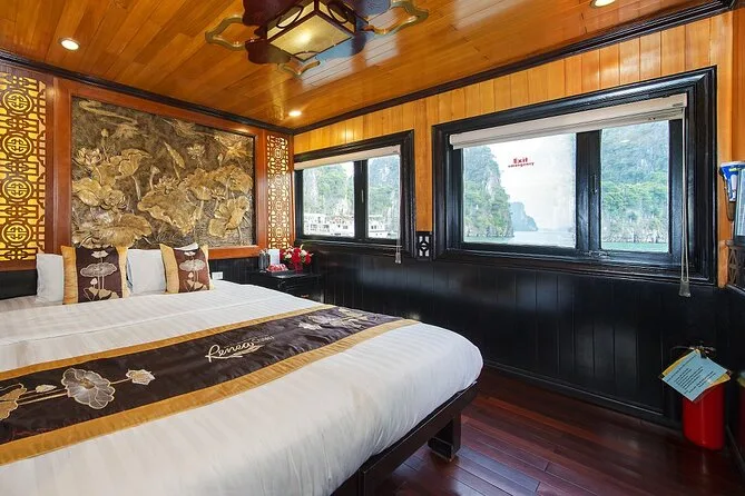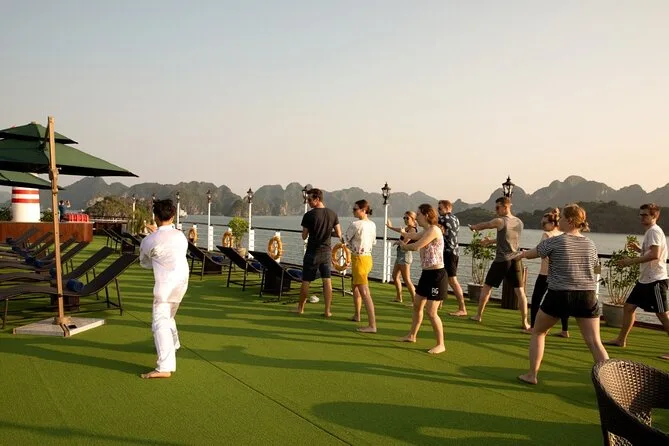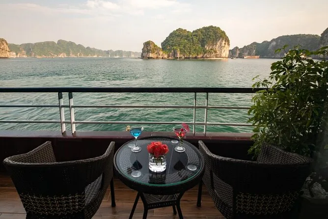 Tu viaje incluye recogida en hotel del Barrio Antiguo de Hanoi hasta el puerto de Ha Long y regreso al final. Cubrimos todas las entradas a cuevas e islas durante el recorrido y todas las comidas a bordo, con especialidades vietnamitas y opciones vegetarianas si las necesitas, siempre frescas. Tu cabina privada tiene aire acondicionado, baño privado y balcón; las toallas están listas después de cada parada para kayak o baño. Las actividades incluyen ciclismo en Viet Hai (ruta Lan Ha), clases de cocina, sesiones de tai chi al amanecer, paseos en bote de bambú con locales, fiestas al atardecer en la cubierta y pesca de calamares nocturna, todo esperando por ti entre esas islas.