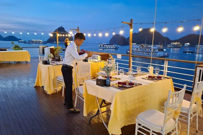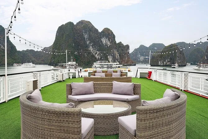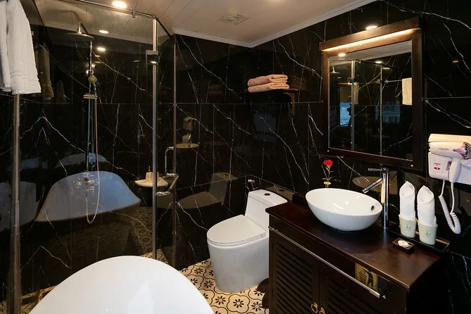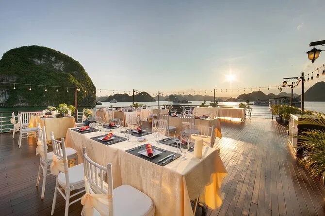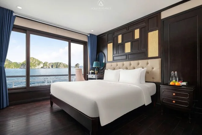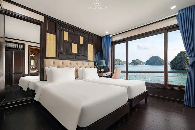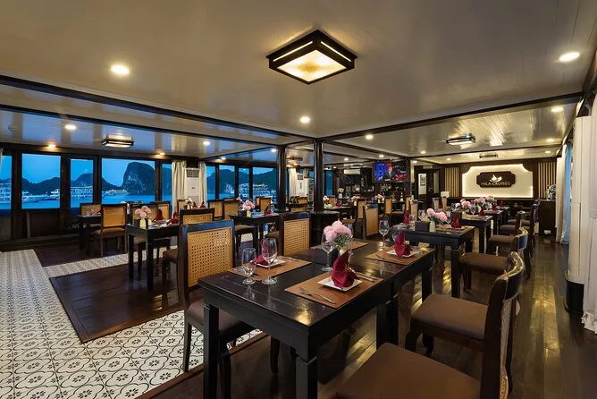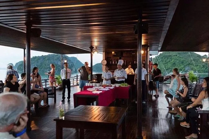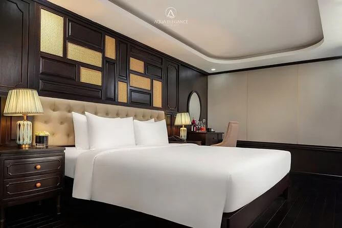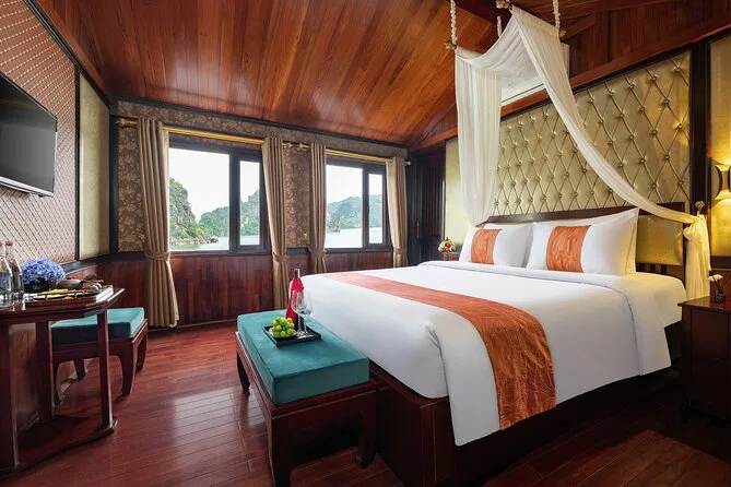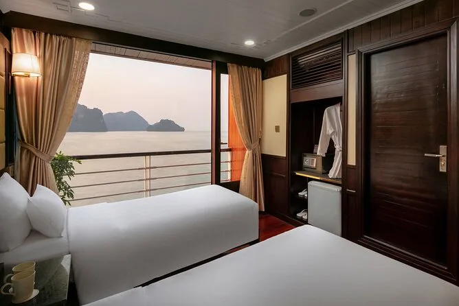 Tu viaje incluye recogida en hotel del Barrio Antiguo de Hanoi si la necesitas, traslados de ida y vuelta por autopista entre Hanoi y Bahía de Halong o hacia Ninh Binh/Tam Coc bajo solicitud. Incluye todas las entradas para visitas como la Cueva Sorprendente y la isla Titop, además de comidas completas a bordo (desayunos, almuerzos y cena), agua embotellada en tu cabina y traslados en bus. Cada pasajero tiene cabina privada con baño; algunas con balcón o bañera si eliges un crucero de categoría superior. Las actividades como kayak, nado, pesca de calamares por la noche (si te animas), karaoke, juegos en cubierta e incluso Tai Chi al amanecer para huéspedes 5 estrellas, están incluidas junto con guías profesionales de habla inglesa durante todo el recorrido.