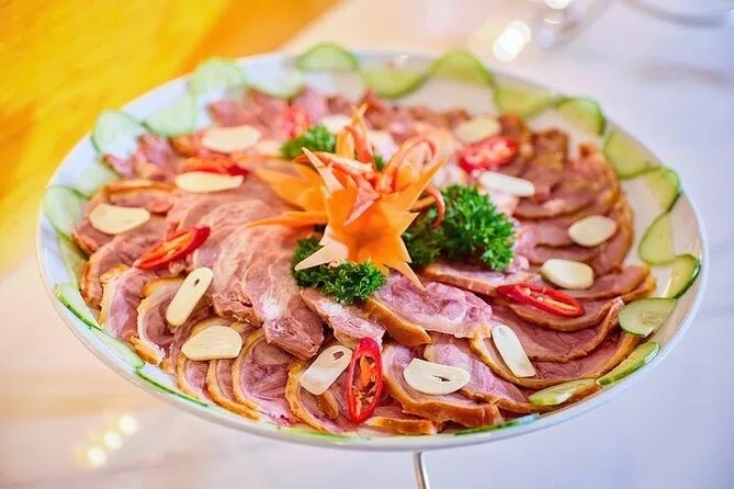 Un almuerzo buffet con cocina vietnamita, mariscos, platos occidentales y opciones vegetarianas a bordo.