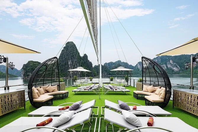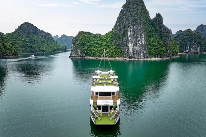 Deslízate entre las famosas islas de piedra caliza de la Bahía de Halong en un crucero premium con jacuzzi, explora las cámaras frescas de la Cueva Sorprendente, haz kayak o paseo en bote de bambú en la cala Luon, y sube o nada en la isla Titop. Incluye recogida en el Barrio Antiguo de Hanoi y un buffet abundante, más snacks al atardecer de regreso al puerto.